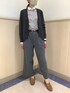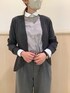 シャツは丸衿で柔らかい印象 +甘くなり過ぎない様にカーディガンはグレーで抑えつつ、 丸みがかった裾は短めの丈感がパンツとメリハリを出してくれます✨ シャツのブラウン生地が透けにくいので カーディガンはフロントボタンを開けてスッキリ見せました😊