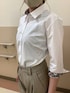 身生地はシンプルな レギュラーカラーの白シャツ☝🏻 別生地にはベージュやグレーといった レトロ風な柄がなんともオシャレ✨ 裾の有無で雰囲気がガラッと変わる 実は様々な表情を楽しめる白シャツです♪ 透け防止でノンアイロンで着れる 機能性も◎