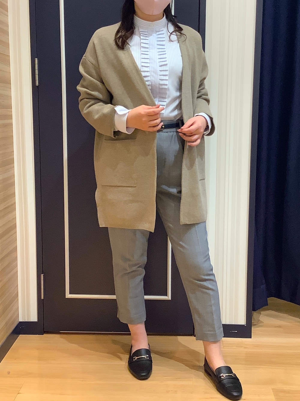たたみフリルが可愛すぎるシャツ😳! 肌触りも柔らかくサラッと着れるし、フリルもお腹までなのでインしてもモコモコしないのがポイントです◎ またまだ寒い日が続きますね⛄️❄️ 静電気が起きにくい大定番のベージュカーデを合わせてみました👌