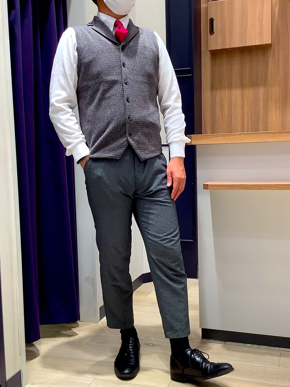 🍀 東京シャツ×gim(R) 🍀 前身カットラペルジレ 「つづく、つながる」をコンセプト に、モノづくりを発信し続ける gim(ジム)とのコラボジレ。 前身頃に風合いと柔軟性のある カットソー生地を使用し、 きっちり見えつつも着心地抜群。 ラペル付きでおしゃれ度もUP。 細かなチェック柄で普段のジャケット スタイルにアクセントをプラス。 ネクタイはドット柄がおすすめ👍