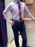 パープルストライプのワイドカラーシャツに赤系ネクタイをコーディネート🍀
