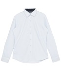ベーシックなブルーシャツは1枚でもレイヤードでも使えるデザインです! 透け防止素材で1枚でも安心して着ていただけます。