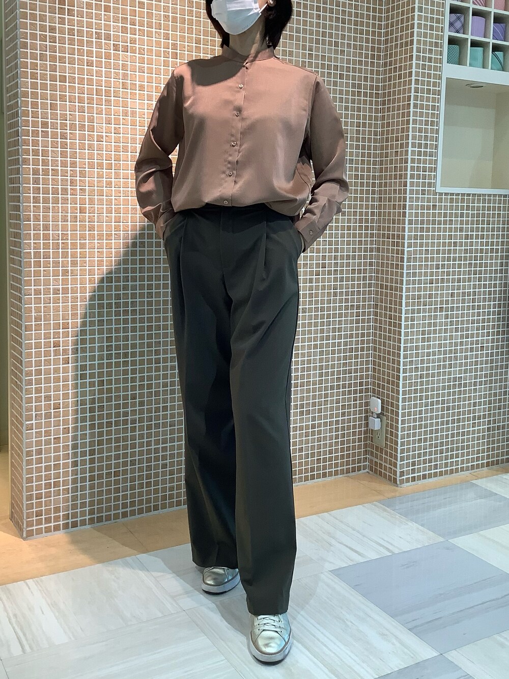 BRICK HOUSE シャツ工房 葛西アリオ店(BRICK HOUSE シャツ工房 葛西アリオ)のシャツ/ブラウス「サテン ワイドシルエット スタンドシャツ」を使ったコーディネート