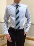 ブルー系のストライプ×ストライプで、爽やかなビジネススタイルに👔 シャツは超形態安定加工でお手入れラクラクです♪ シンプルすぎず派手すぎないデザインで、オシャレなビジネススタイルに😎 ネクタイの幅が広めなストライプは、さまざまなシャツで良いアクセントになります✨