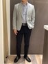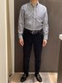 ピッチ太めのストライプ柄で、ノーネクタイでも存在感のあるコーディネートに♪