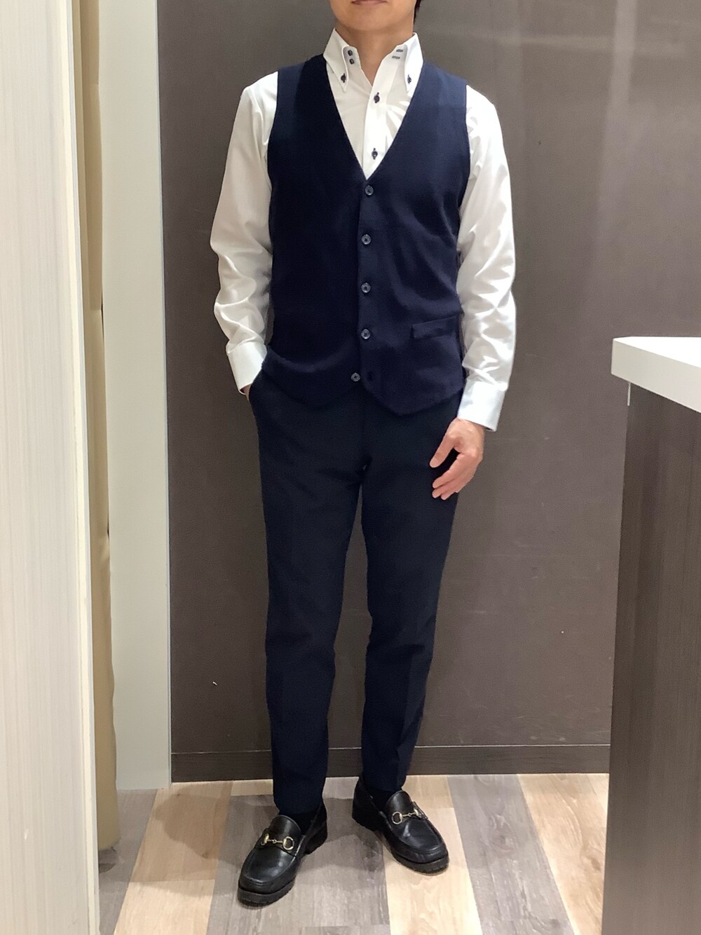 BRICK HOUSE シャツ工房 柿田川サントムーン店(BRICK HOUSE シャツ工房 柿田川サントムーン)のベスト「ハーフミラノニットジレ」を使ったコーディネート