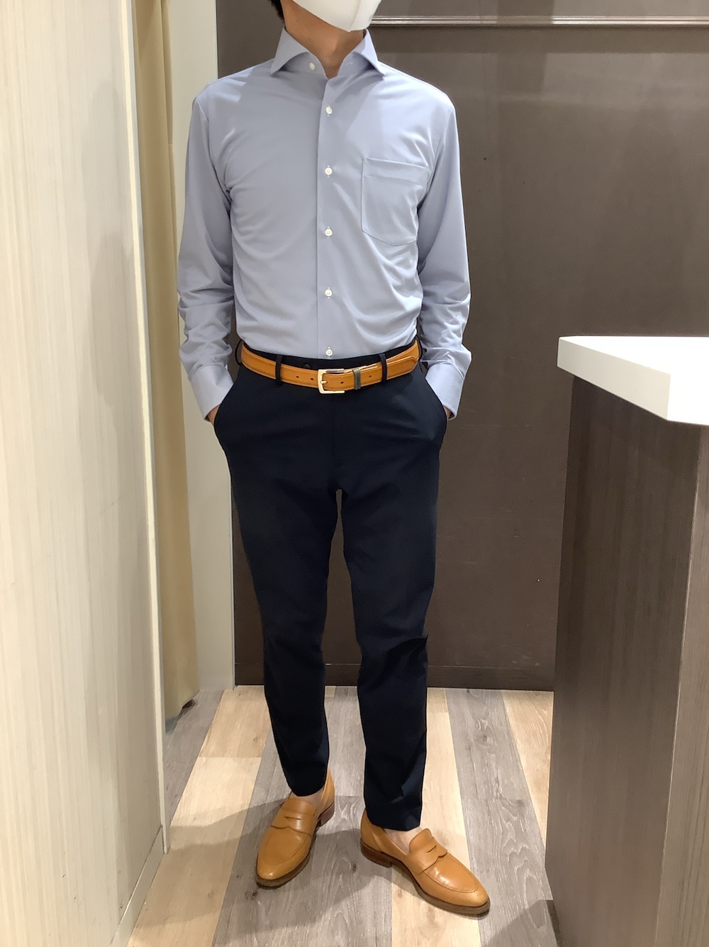 BRICK HOUSE シャツ工房 柿田川サントムーン店(BRICK HOUSE シャツ工房 柿田川サントムーン)のビジネスシャツ「形態安定ノンアイロン ホリゾンタルワイド 長袖ストレッチビジネスワイシャツ」を使ったコーディネート