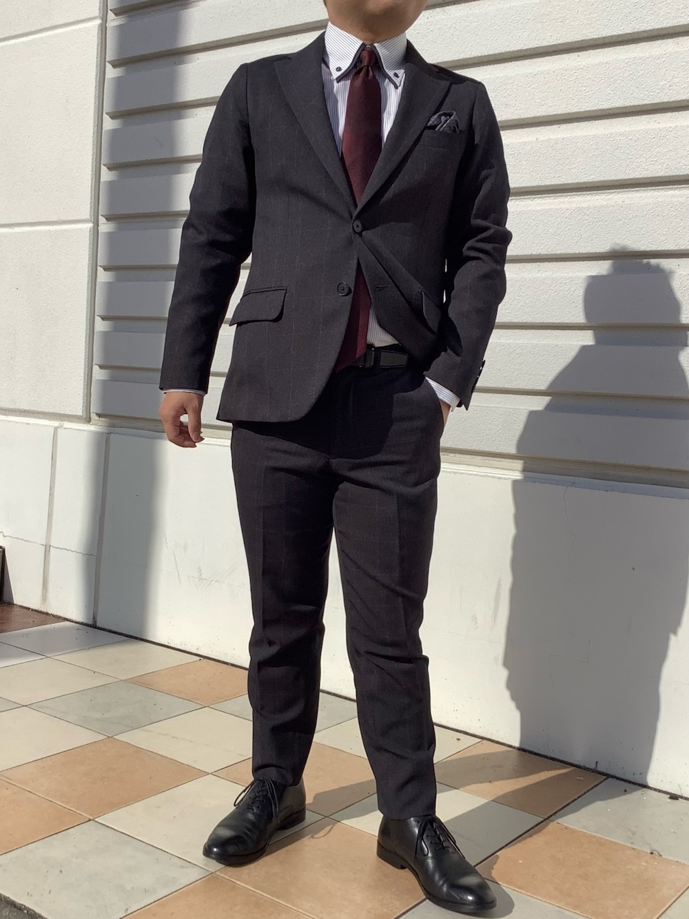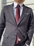 衿が特徴的なオシャレなシャツです♪ ノーネクタイでもアクセントになります👌 シャツが落ち着いた色なので、ネクタイの赤が映えます👔