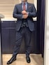 ベストを合わせたコーデ👔 シャツは爽やかなブルーストライプで形態安定性も良いのでお手入れ楽です👍 ストライプシャツにはコーディネートを引き締める為にネクタイとベストは無地にしました✨ ベストは通年使えるので、様々な場面で活躍しそうです‼️