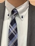 ミントグリーンシャツの、爽やかな印象を取り入れのに最適👍 サックスブルーのオシャレなチェック柄ネクタイをしめると ビジネスシーンでもいいアクセントになりGOOD✨
