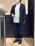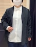 白シャツほどカッチリしすぎない、なめらかな素材でゆとりのある白ブラウスです。 ジャケットにデニムを合わせてカジュアルダウンしたコーディネート。 ブラウスはとろみがあり肌当たりが柔らかです。