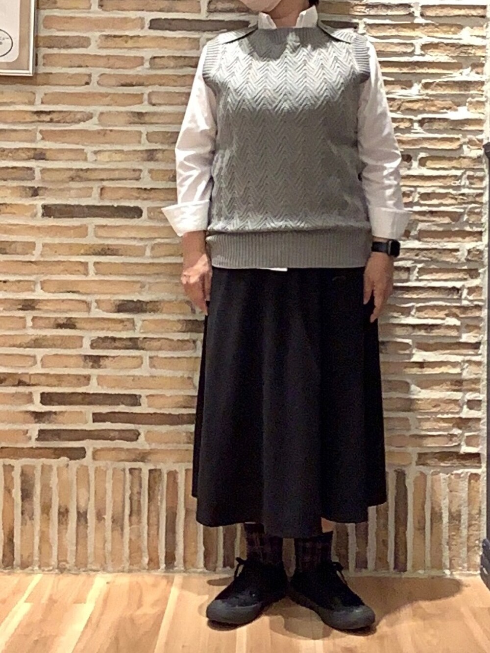 グレーのボートネックベストは シャツとの相性が良いです 毛玉になりにくく洗濯機で洗えるのも おすすめポイントです