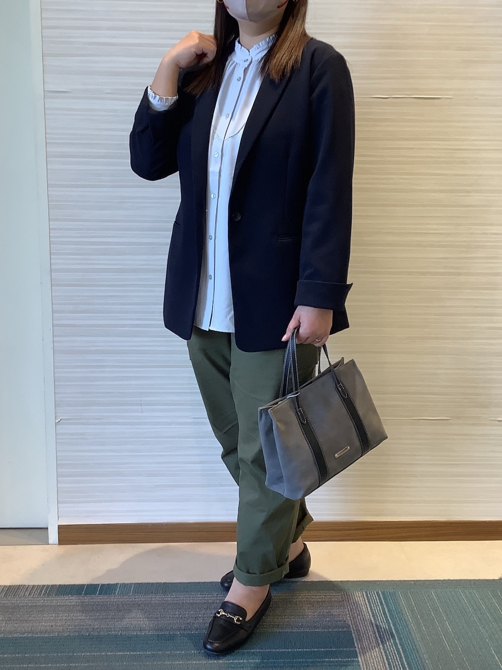 SHIRTS PLAZA 長崎みらいココウォーク店(SHIRTS PLAZA 長崎みらいココウォーク)のシャツ/ブラウス「シルキーサテン バンドカラーフリル ブラウス」を使ったコーディネート