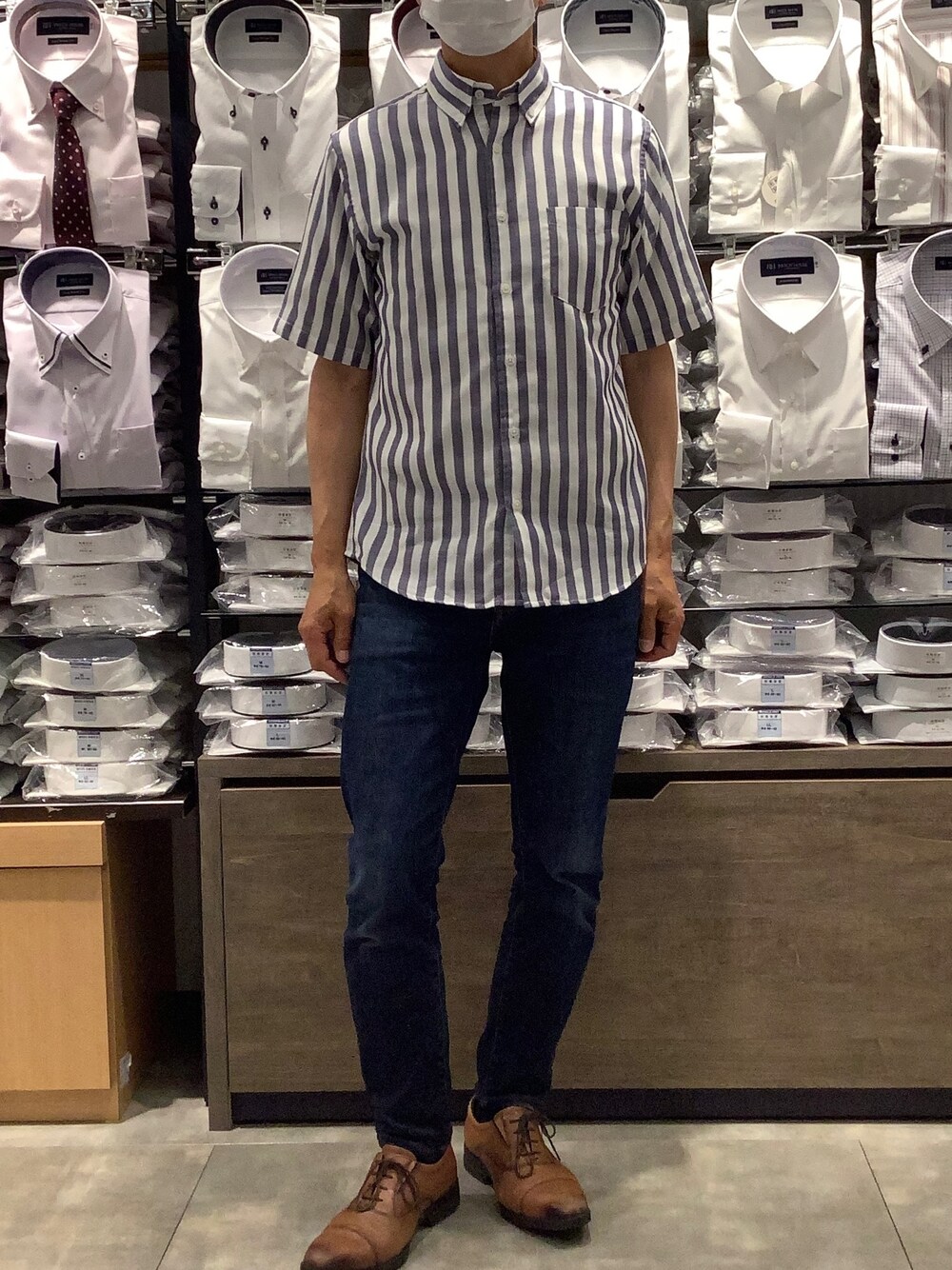 BRICK HOUSE by Tokyo Shirts 岡崎イオンモール店のポロシャツ「綿100% Wガーゼ ボタンダウン 半袖カジュアルシャツ」を使ったコーディネート