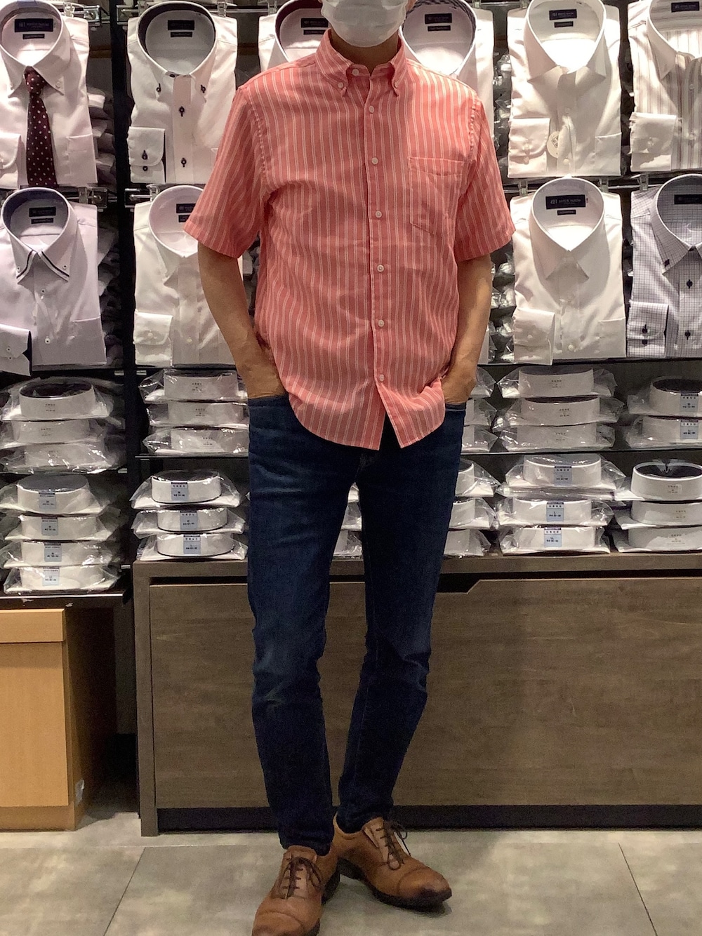 BRICK HOUSE by Tokyo Shirts 岡崎イオンモール店のポロシャツ「綿100% Wガーゼ ボタンダウン 半袖カジュアルシャツ」を使ったコーディネート