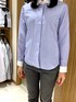 襟元の飾りボタンが可愛いらしい! 見頃のボタンは隠れるのでスッキリした印象になります。 ストライプ柄が柔らかい立体感を出してくれます。