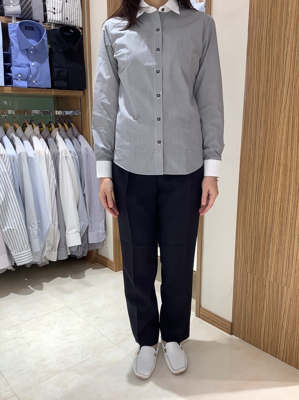 SHIRTS PLAZA 国分寺セレオ店(SHIRTS PLAZA 国分寺セレオ)のビジネスシャツ「形態安定ノーアイロン クレリックワイド 長袖ビジネスワイシャツ」を使ったコーディネート