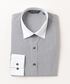 モノトーンコーディネートですが、 クレリックシャツなら、暗くなりすぎずにまとまります! 細かいチェック柄なので合わせやすさ◎