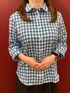 夏らしい爽やかブルーのチェック柄は 一枚でコーディネートが決まる主役シャツです ゆったりシルエットで楽々 ダブルガーゼ素材で夏も快適です