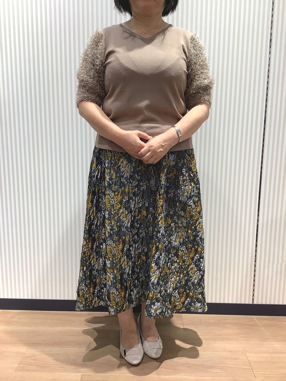 BRICK HOUSE シャツ工房 鈴鹿イオンモール店(BRICK HOUSE シャツ工房 鈴鹿イオンモール)のニット/セーター「袖フェザー切替プルオーバー 五分袖」を使ったコーディネート