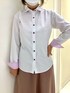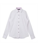 フェミニンな印象になる珍しい丸襟シャツ!普段ピンクのシャツを着ない方にも挑戦しやすいホワイトに近いピンクの生地。 薄ピンクと薄パープルの刺子柄♪ 衿元とカフスのラベンダーピンクを覗かせて色の変化を楽しめます。 外が暑い時期もオフィスが寒いので長袖をお探しの方におすすめ! 透けを軽減する嬉しいUVカット機能付!