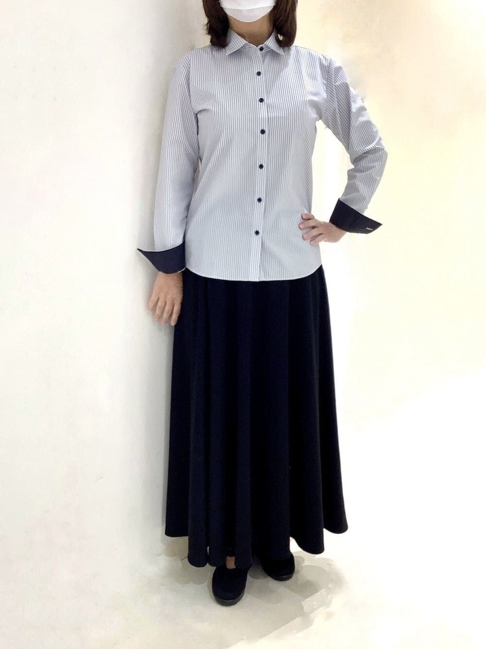 好印象に導いてくれるストライプシャツはシンプル派から圧倒的支持率! ホワイト生地にニュアンスのあるブルー×グレーのストライプで、春夏の爽やかなストライプから秋らしいストライプへシフト。 縦ラインや合わせる色選びで、より秋冬らしい印象とスタイルアップに繋がります。 形態安定でお手入れ簡単なのでら働く女性にオススメです!