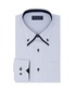 個性的なマイクロチェックのダブルカラーシャツ。ネイビーのドットタイで引き締めてみました。形態安定シャツのためお手入れも簡単です。