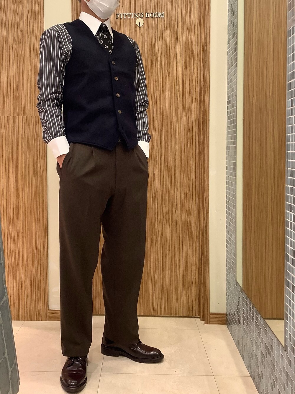 ブラック×ネイビーのシックなイメージのコーディネートです! ジレをチャコールグレーにしてもかっこいいと思います😎