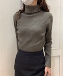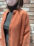 カーキのタートルネックとスタンドカラーのコーデュロイ素材のオレンジのシャツ◎ 緩めのパンツに合わせて自然なきれいめスタイルにしてみました◎