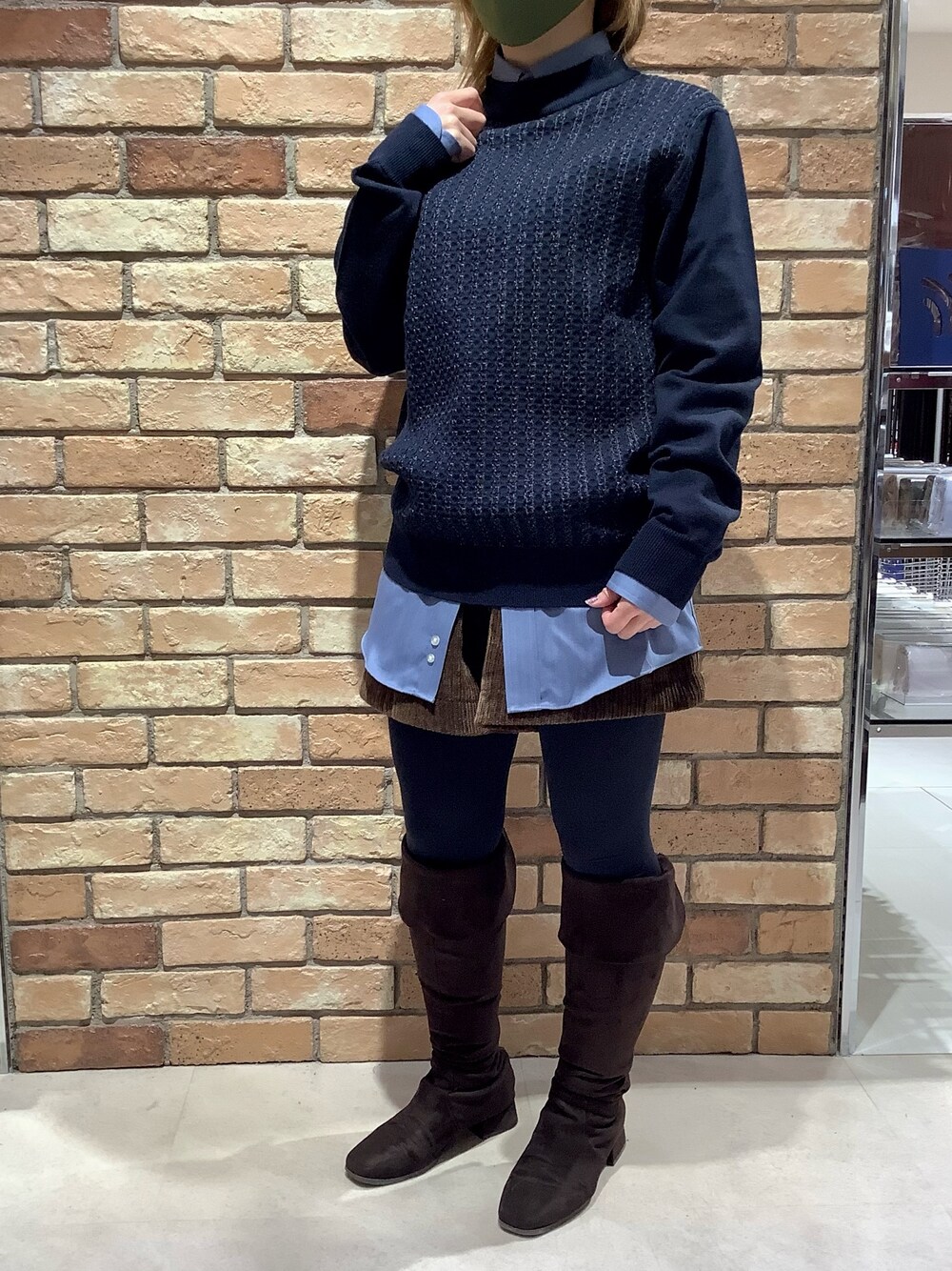 メンズシャツにメンズニットのレイヤードコーデ 静電気防止シャツにウール42%混🐏のセーターが機能的で暖かい🔥