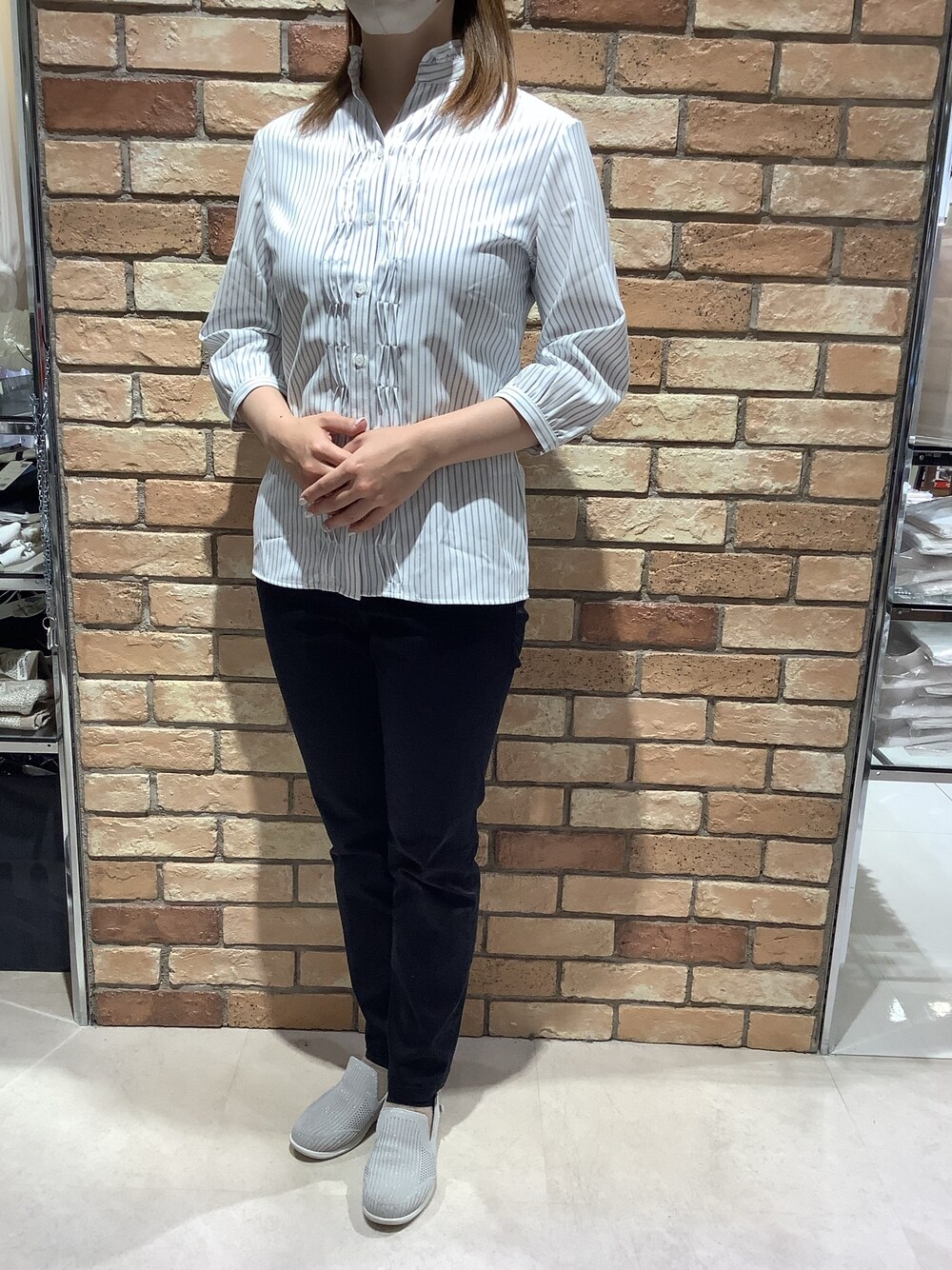 BRICK HOUSE シャツ工房 札幌駅エスタ店のビジネスシャツ「COFREX ひねりピンタック 七分袖ブラウス」を使ったコーディネート