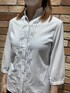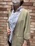 青ストライプのフリル七分袖シャツです。 袖が少しバルーンになっていて可愛いです🌸 ジャケットとの相性も抜群です◎