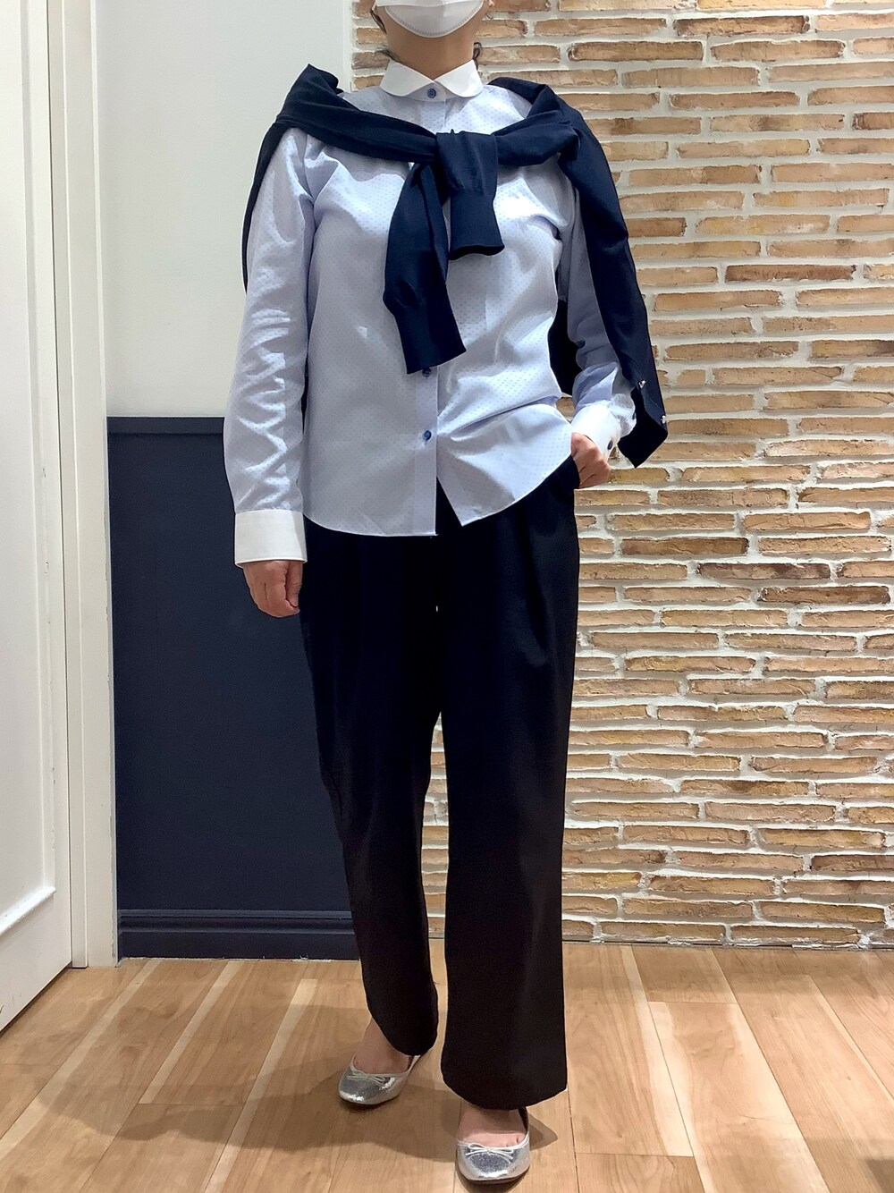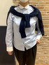 襟と袖口の白色がおしゃれ✨ 丸襟が可愛いすぎるかもと思っている方は第一ボタンを外してみてください! ジャケット、セーターなど色々なアイテムと合わせやすく着回し可能なアイテムです👚
