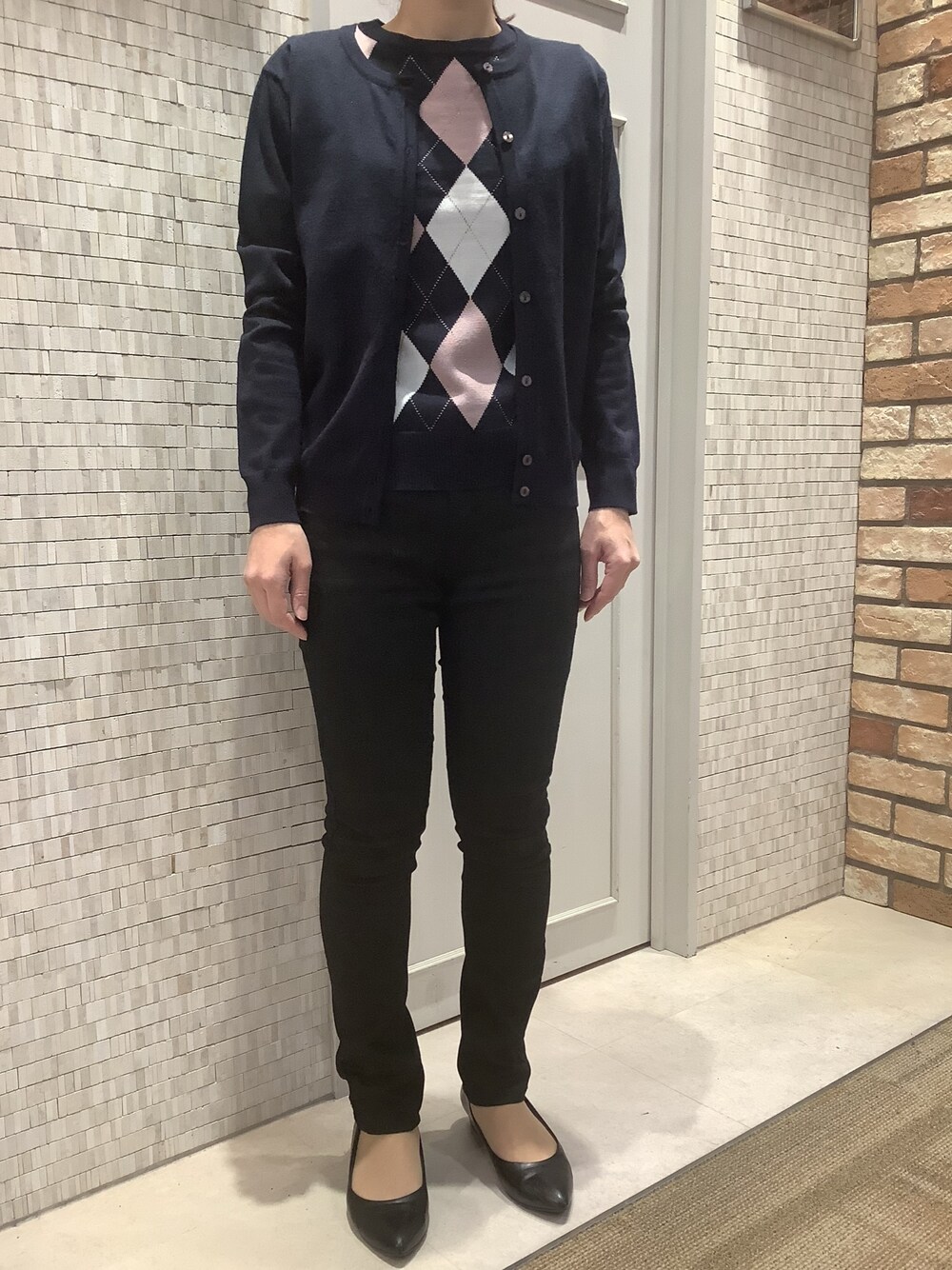 BRICK HOUSE シャツ工房 徳重ヒルズウォーク店のアンサンブル「アーガイル柄 アンサンブルニット」を使ったコーディネート
