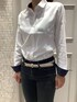 ネイビーチェックの別布がさりげない アクセントになったホワイトシャツ。 ネイビーのジャケットやカーディガン と合わせて落ち着いたコーデに。 ビジネスシーンはもちろんのことカジュアルシーンでも使えるアイテムです。