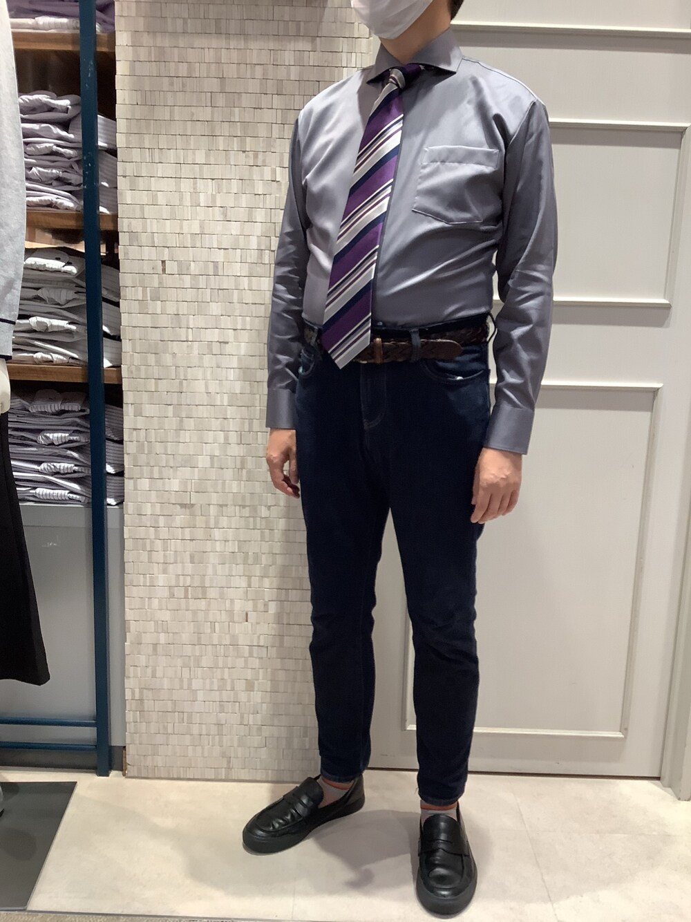 BRICK HOUSE シャツ工房 徳重ヒルズウォーク店のビジネスシャツ「超形態安定ノーアイロン ホリゾンタルワイド 長袖ビジネスワイシャツ」を使ったコーディネート