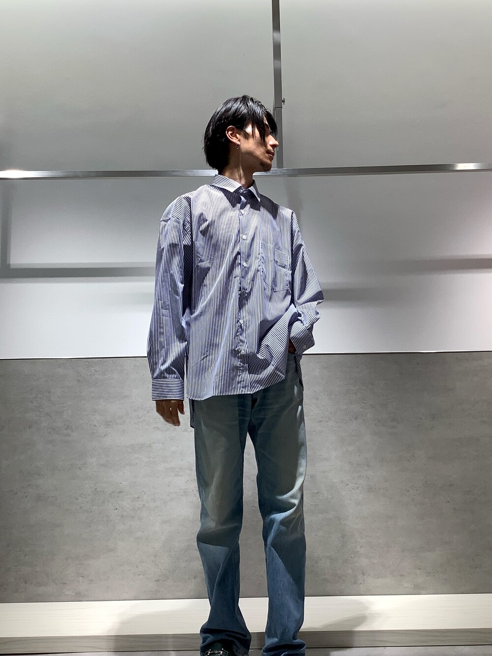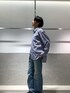 ゆったりしたリラックスバックプリーツシャツを着用したコーデ。 後ろからみたシルエットがお洒落なシャツ✨ ユニセックスで着用できるのでおそろコーデにもおすすめです!