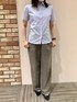 柔らかい印象のブルーシャツはパンツ合わせでカッコよく、スカート合わせで上品に😇 どんなコーディネートでもきちんと感が出て使いやすいデザインです。