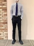 ネイビーのワントーンで全体をまとめた清潔感あるビジネススタイルです✨ シャツはポリエステル100%でストレッチ性があり、なめらかな質感が特徴です☺️ ネクタイは日本製のシルク100%で高級感のあるソリッドタイでギフトにもオススメの一品です🎁
