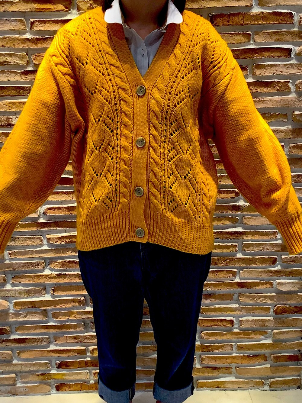 BRICK HOUSE シャツ工房 松山フジグラン店のカーディガン/ボレロ「透かし編み トッパーニットカーディガン」を使ったコーディネート