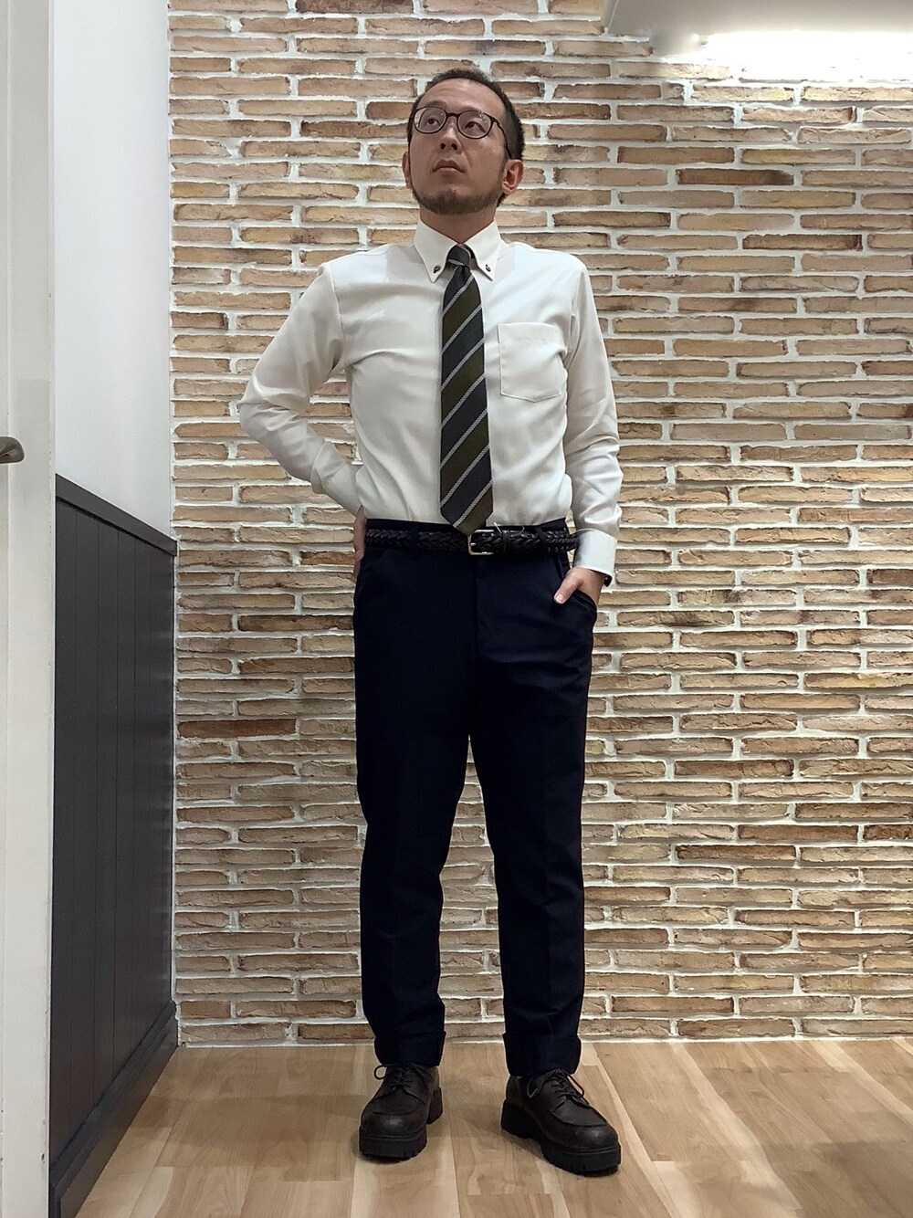 BRICK HOUSE シャツ工房 福岡橋本木の葉モール店のビジネスシャツ「形態安定ノンアイロン ドゥエボットーニ 長袖ビジネスワイシャツ」を使ったコーディネート