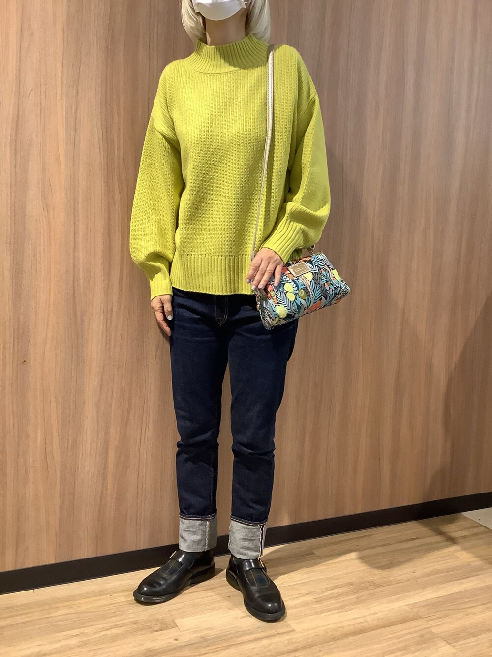 元気なイメージのイエローカラー。顔周りも明るく見せ、シンプルなデニムとのコーデも印象づけます。