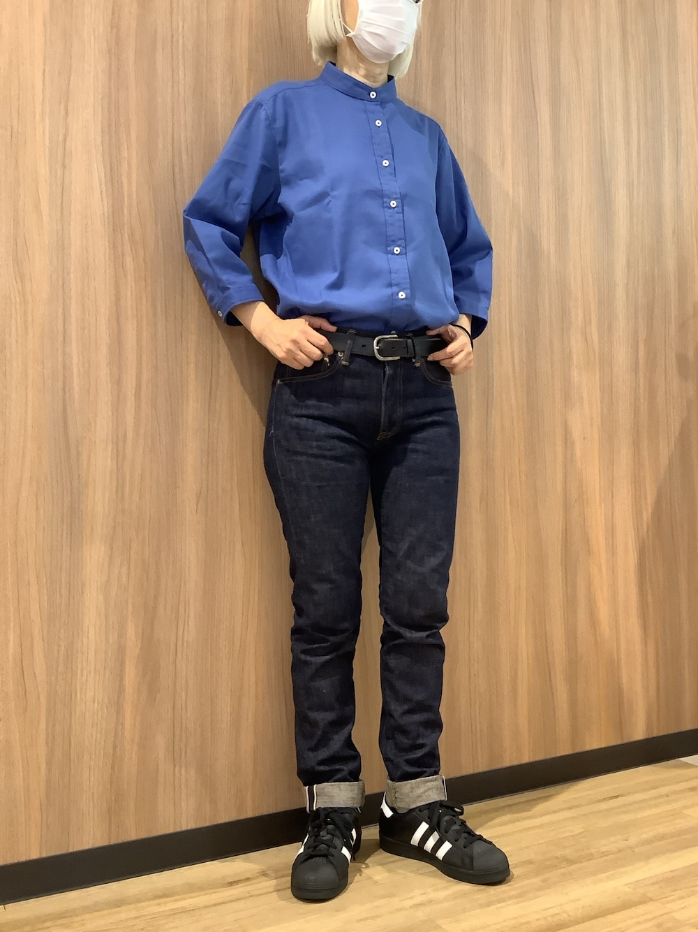 しっかりとした濃い青が大人格好いいダブルガーゼシャツ。 普段よりも大きめのサイズ選びでリラックスコーデ😎
