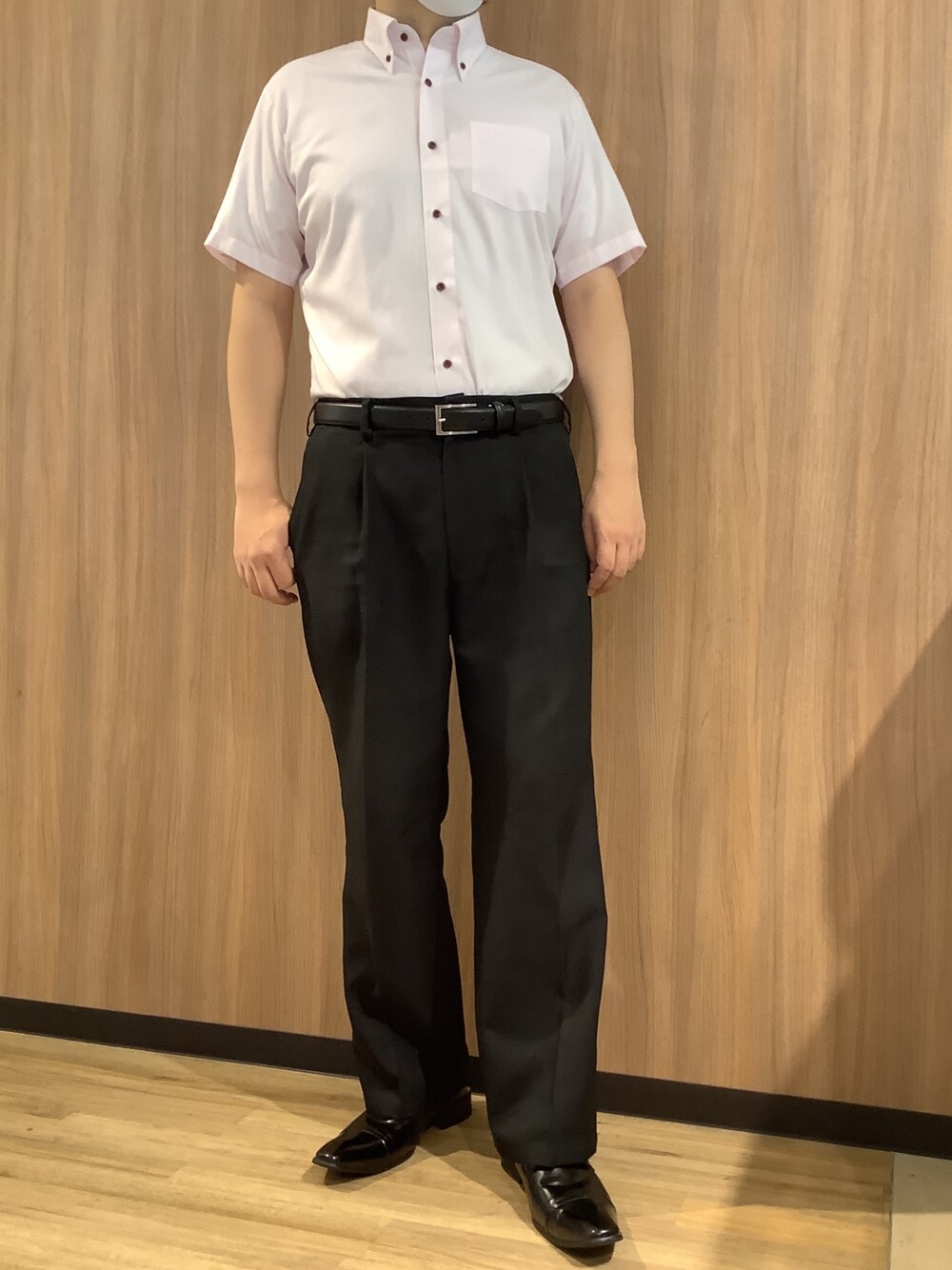 涼しげに見える寒色系を選びがちなこの時期 あえて顔色が良く見える暖色系のピンクを チョイス✌️ ノータイ時 ボルドーの色ボタンかアクセントに✨ 吸水速乾機能で汗ばむ季節も快適◎
