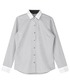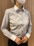 白襟と白カフスの華やかさが際立つグレーシャツ。小紋の柄織りが施してあり一枚着でもサマになります。 黒のボトムスですっきりとしたコーデに仕上げました❤︎