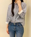 ご覧いただきありがとうございます☺️💖 ふんわりと風が通るWガーゼシャツは、 弊社自慢の形態安定加工❣️ さらにUVカット効果もございます!! キチンと感のあるスタンドのクレリック衿✨ ネイビーストライプでほっそり見えも叶います💙 こちらのシリーズ、色や柄違い衿型違いが多数ございますので、夏のお出かけはWガーゼで決まりっ💓