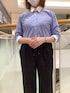 ブルーに衿と袖が白のクレリックシャツ 爽やかできちんと感も出る1枚です。