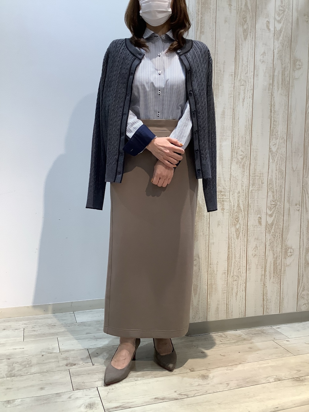 BRICK HOUSE by Tokyo Shirts 博多ゆめタウン店(BRICK HOUSE by Tokyo Shirts 博多ゆめタウン)のカーディガン/ボレロ「アンチピリング 配色ケーブルカーディガン」を使ったコーディネート