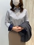 ネイビーチェック柄が 上品で可愛いシャツです♪ 衿羽根と袖に別布の縁取りが アクセントになっています♪ 配色ケーブルカーディガンと合わせ 秋冬にも活躍する シャツとカーデです✨