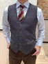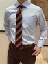 細かなストライプのブルーのシャツに、合わせやすいネイビーのジレ。 ネクタイはアクセントとして明るいデザインをセレクト。 綿100%なのにノーアイロンの超形態安定シリーズです。